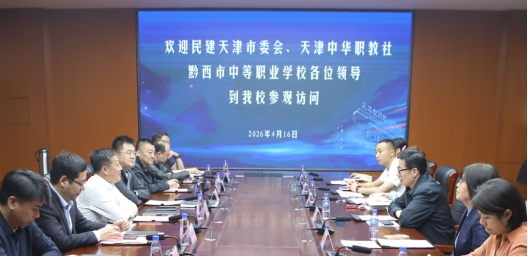 2026年4月16日,民建天津市委会专职副主委张荃、天津中华职业教育社三级调研员王爱云,黔西市中等职业学校副校长张豫等一行8人莅临我院,开展交流座谈与实地考察,共商职教合作、共促协同发展。学院党委书记苏敬、院长于海祥、副院长闫福刚及相关部门负责人热情接待,全程陪同参观座谈。